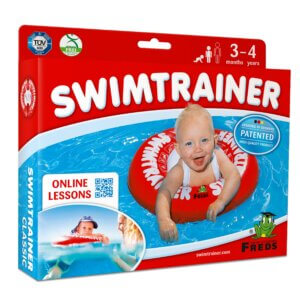Il salvagente SWIMTRAINER Classic rossa è progettata per accompagnare i bambini dai 3 mesi ai 4 anni (6-18 kg) nelle loro prime esperienze acquatiche.